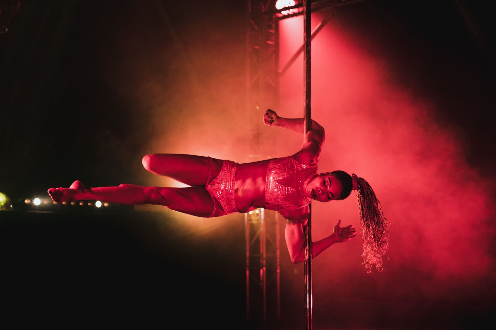 provides travel and accommodation for artists, food by Black businesses, paying a majority Black and POC events staff, hire predominantly Black and Queer film crews, and sponsor gifting everyone where possible – including the pole cleaners