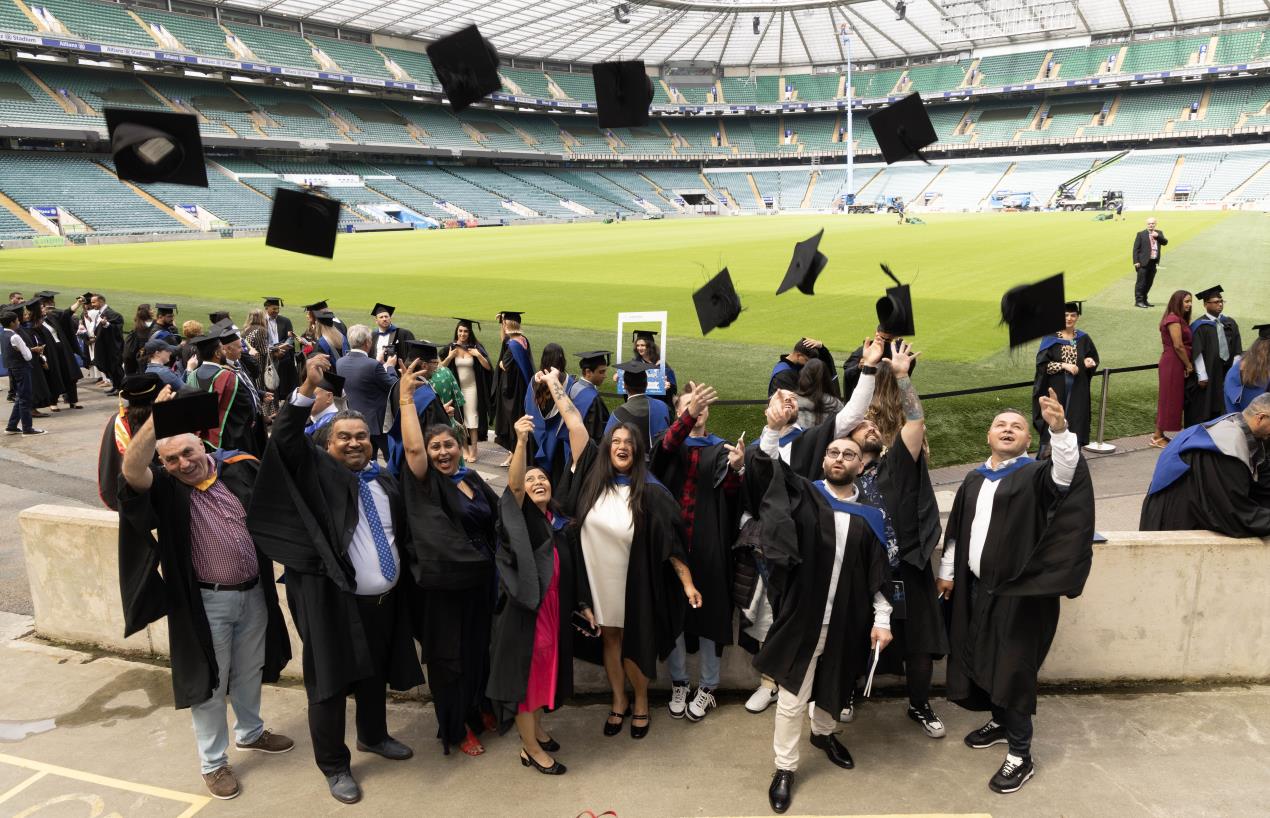 Today is the first of three days of Graduation celebrations for University of West London (UWL) students at the legendary Allianz Stadium, Twickenham – home of the England rugby team. There will be a total of nine ceremonies featuring thousands of graduands and many smiles, hugs, and handshakes.