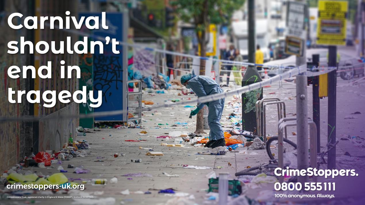 If you’ve heard talk about knives or weapons or are worried about someone’s intentions for going to carnival, Crimestoppers urges you to call 0800 555 111 or visit crimestoppers-uk.org. If you want to speak up and protect your loved ones, you can do it 100% anonymously. Our charity will never ask for your name, and no one will ever know you got in touch