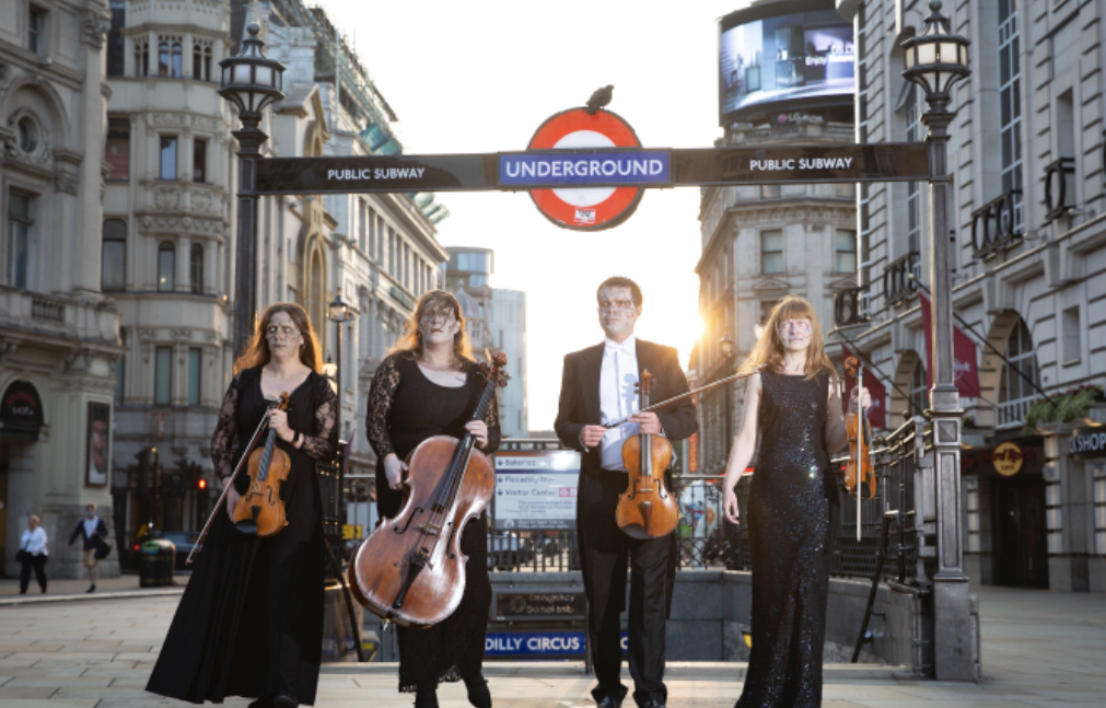 City workers and cyclists looked on in surprise as living dead members of leading chamber orchestra the Covent Garden Sinfonia performed at Piccadilly Circus and under the London Eye along the South Bank.