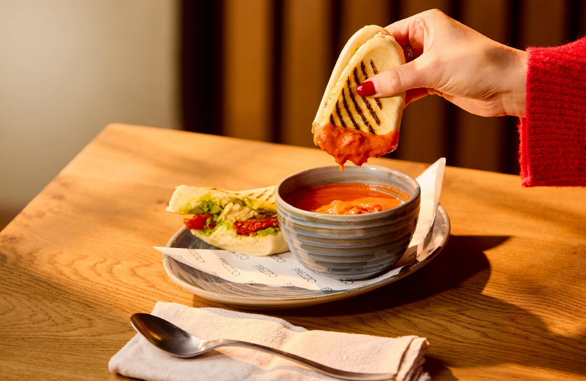 The new menu offers a scrummy soup and panini deal from just £7.99, featuring Prezzo’s delicious tomato soup, along with a choice of mouth-watering cheese & ham, pesto cheese & tomato or pesto chicken paninis.