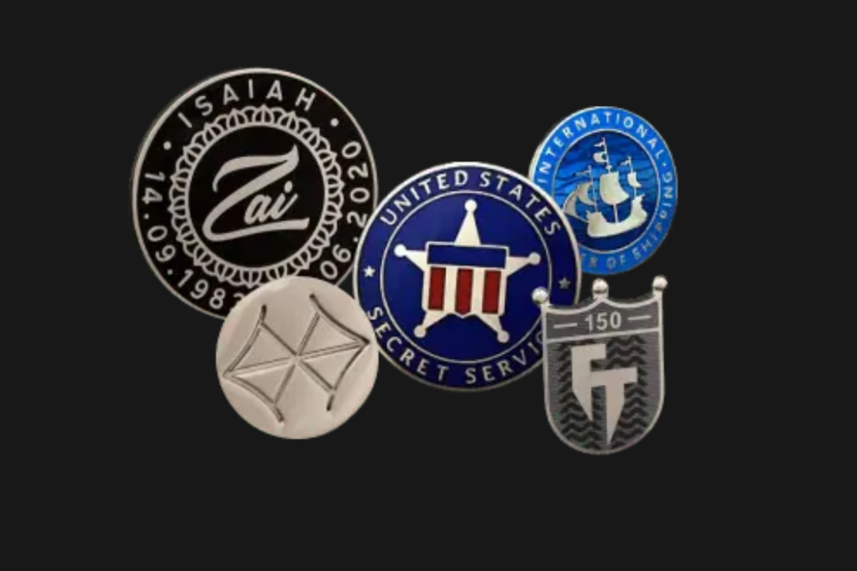 - Metal: Metal pins have a classic, understated look, typically without colour. They are often embossed or etched, which creates a monochromatic design that appeals to minimalists.