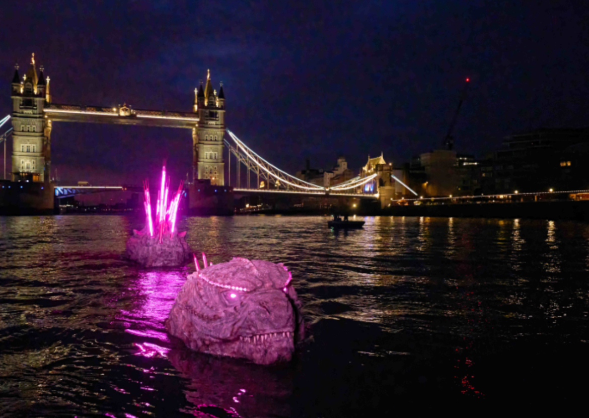 Witnesses were stunned by the sheer scale of the film’s titular Titans, with just the visible sections of Godzilla bursting out of the water spanning an impressive 20 metres – the length of a tennis court. His ominous appearance on The Thames is inspired by a moment in the upcoming film’s trailer when the ‘Water Kaiju’ swims through a river, churning scenery in his path.