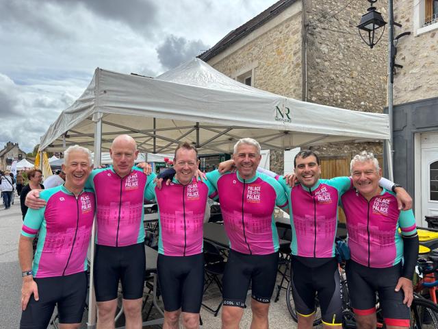 47 riders cycled to the Palace of Versailles from Crystal Palace over four days, battling wind, rain and steep hills as part of a fundraising challenge for St Christopher’s Hospice.
