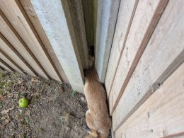 A young fox trapped between two concrete fence posts in a Harrow back garden has been rescued by the RSPCA.