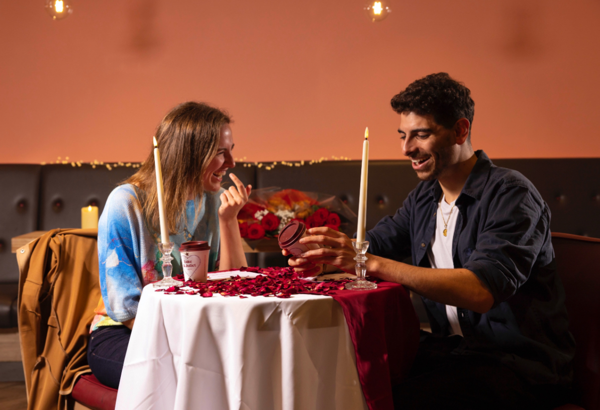 To mark the relationship milestone, the shop was decorated with fairy lights and fresh flowers, and the coffee was served in customised cups.