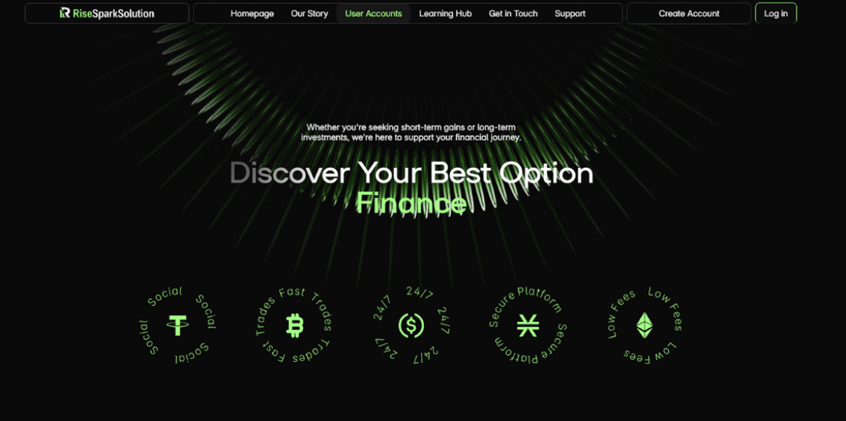RiseSparkSolution.com aims to simplify the world of online investing and make it accessible to all. The website is straightforward and user-friendly, with essential sections like “Our Story,” “User Accounts,” “Learning Hub,” and “Support” easily accessible from the homepage. Designed to guide both beginner and advanced investors, RiseSparkSolution.com offers an impressive range of educational resources and personalized support, along with robust security measures to protect users’ investments.