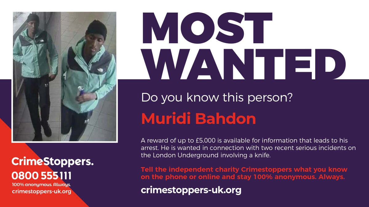 ***Crimestoppers is offering up to £5,000 for information the charity exclusively receives – either online or by calling freephone 0800 555 111 – that leads to the arrest of Muridi Bahdon***