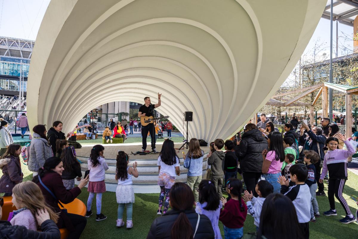 Live music will take place at the Sound Shell – Wembley Park’s open-air performance space on iconic Olympic Way, set against the backdrop of Wembley Stadium. Performances include a Disney Singalong Show from Jasmine Earl and acoustic sets from French duo Jenny & David, known for their genre-blending live shows and rich, full-band sound using loop pedals and effects.