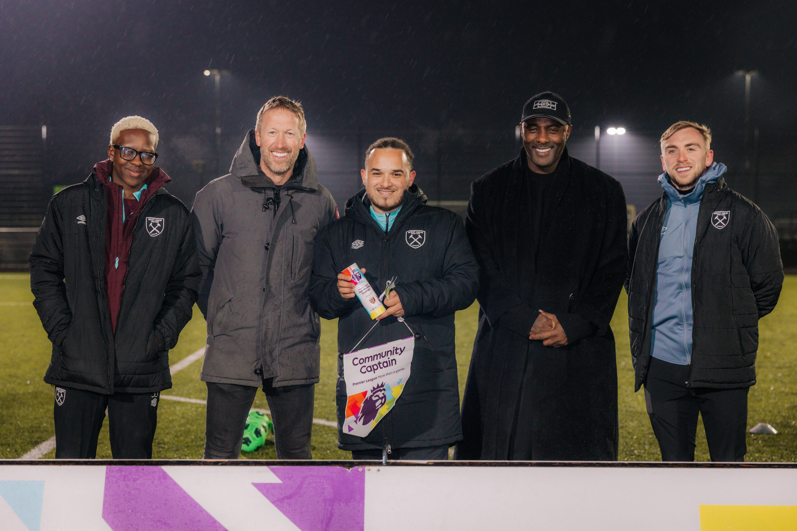 West Ham United’s Head Coach, Graham Potter, Club Captain, Jarrod Bowen, women’s first team player, Princess Ademiluyi surprised Arran when they presented him with his Community Captain award this week (Monday 10 February). The presentation took place at a Premier League Kicks session at the Bobby Moore Sports Hub in Dagenham, supported by Arran. It was also attended by acclaimed Hollywood actor and campaigner, Idris Elba, who was keen to see the impactful work that Arran delivers on behalf the Club. Arran will also be celebrated in front of over 60,000 West Ham fans at the London Stadium at the Club’s home Premier League fixture against Brentford on 15 February.